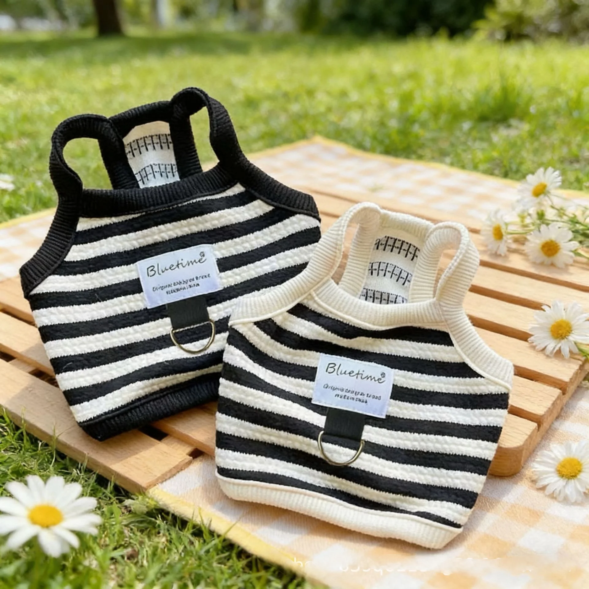 Gilet Estivo a Righe Bianche e Nere per Animali Domestici, Vestiti Carini per Cuccioli, Abbigliamento con Bretelle per Bulldog Chihuahua, Costume in Cotone per Cani, T-Shirt per Cani