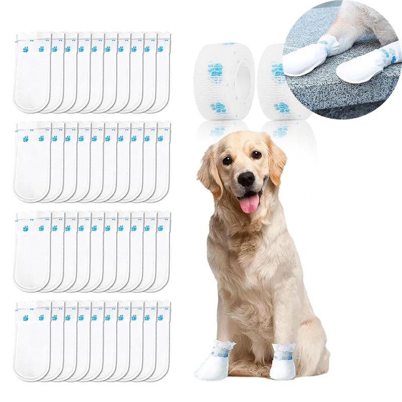 20/40PCS Scarpe per zampe usa e getta per animali domestici Tessuto non tessuto impermeabile Coperture per scarpe anti-sporco Cane all'aperto che cammina Calzini per cani di piccola taglia