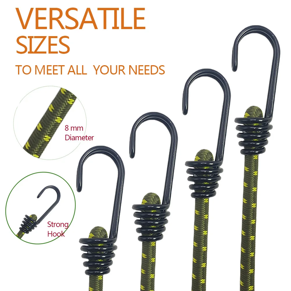 Set di 4 Corde Elastiche Rinforzate con Ganci, Cinghie da 24 Pollici per Tende e Teloni, Resistenti per Uso Esterno