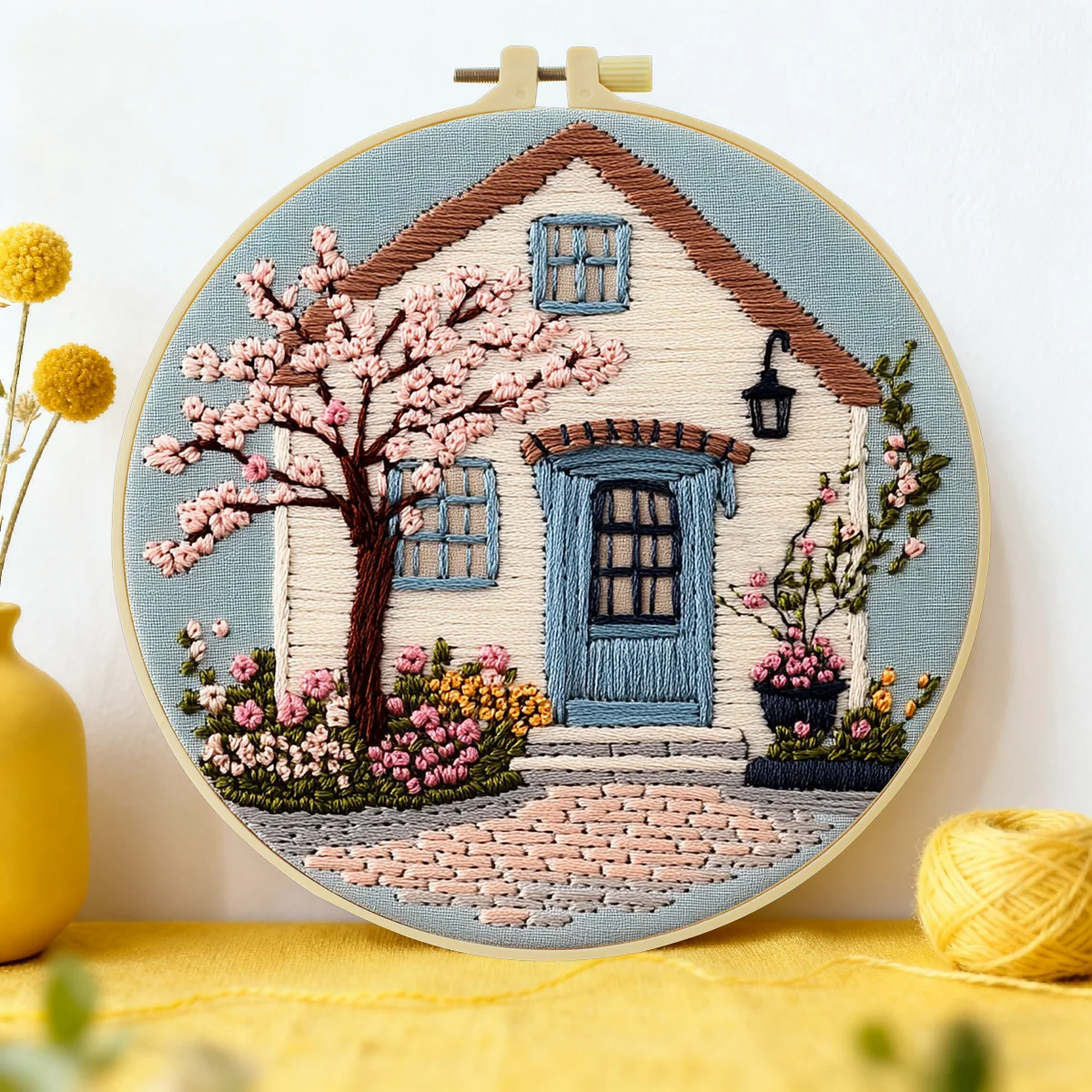1 pz 20X20 CM/15X15 CM 7.87/6.3 pollici La vista davanti alla porta Ricamo Starter Kit Kit FAI DA TE FAI DA TE ricamo kit manualidades