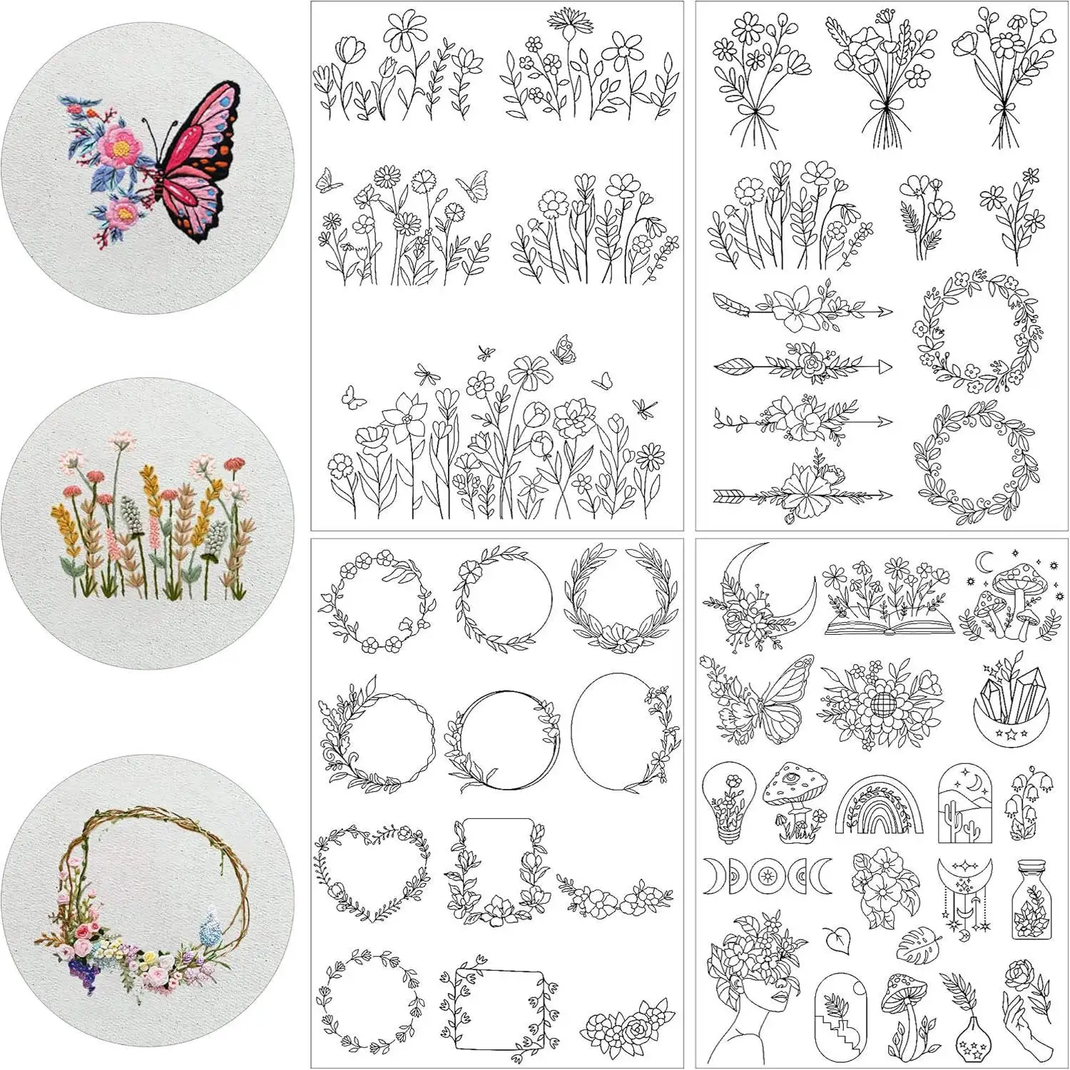 4 fogli di motivo ricamato stabilizzatore solubile in acqua, carta da ricamo istantanea appiccicosa, fiore farfalla lavabile