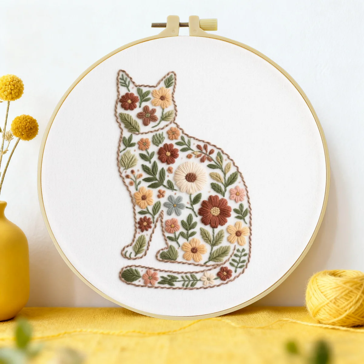 1 pz 20X20 CM/15X15 CM 7.87/6.3 pollici Un gatto composto di fiori Borsa Ricamo Starter Kit FAI DA TE kit di ricamo FAI DA TE artigianato