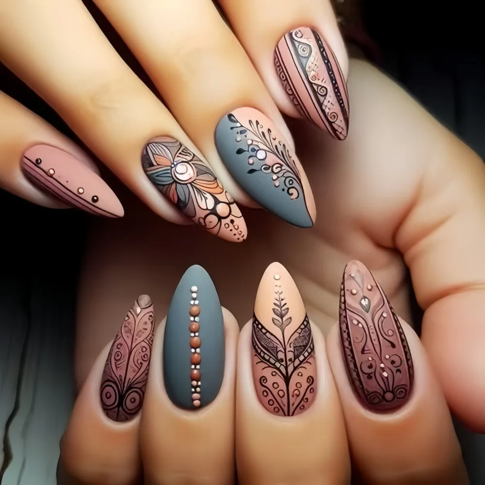 24 Pezzi di Unghie Finte Romantiche a Forma di Cuore e Fiore, Unghie Finte Colorate con Motivi Floreali, Unghie Finte Vintage Opache a Mandorla