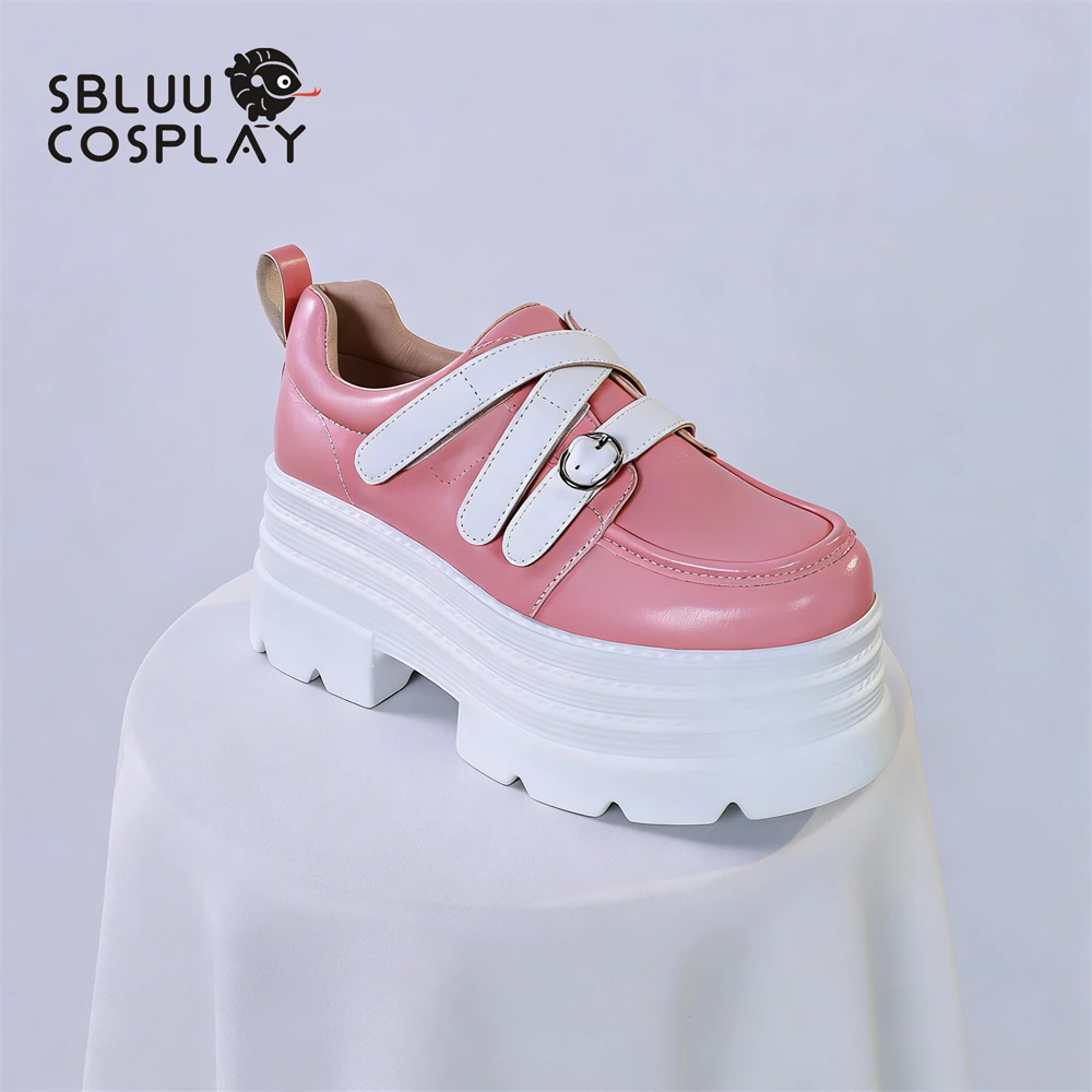 Scarpe Cosplay SBluuCosplay Zenless Zone Zero Sunna, Mocassini Rosa con Plateau e Tacco Grosso con Cinturini Bianchi