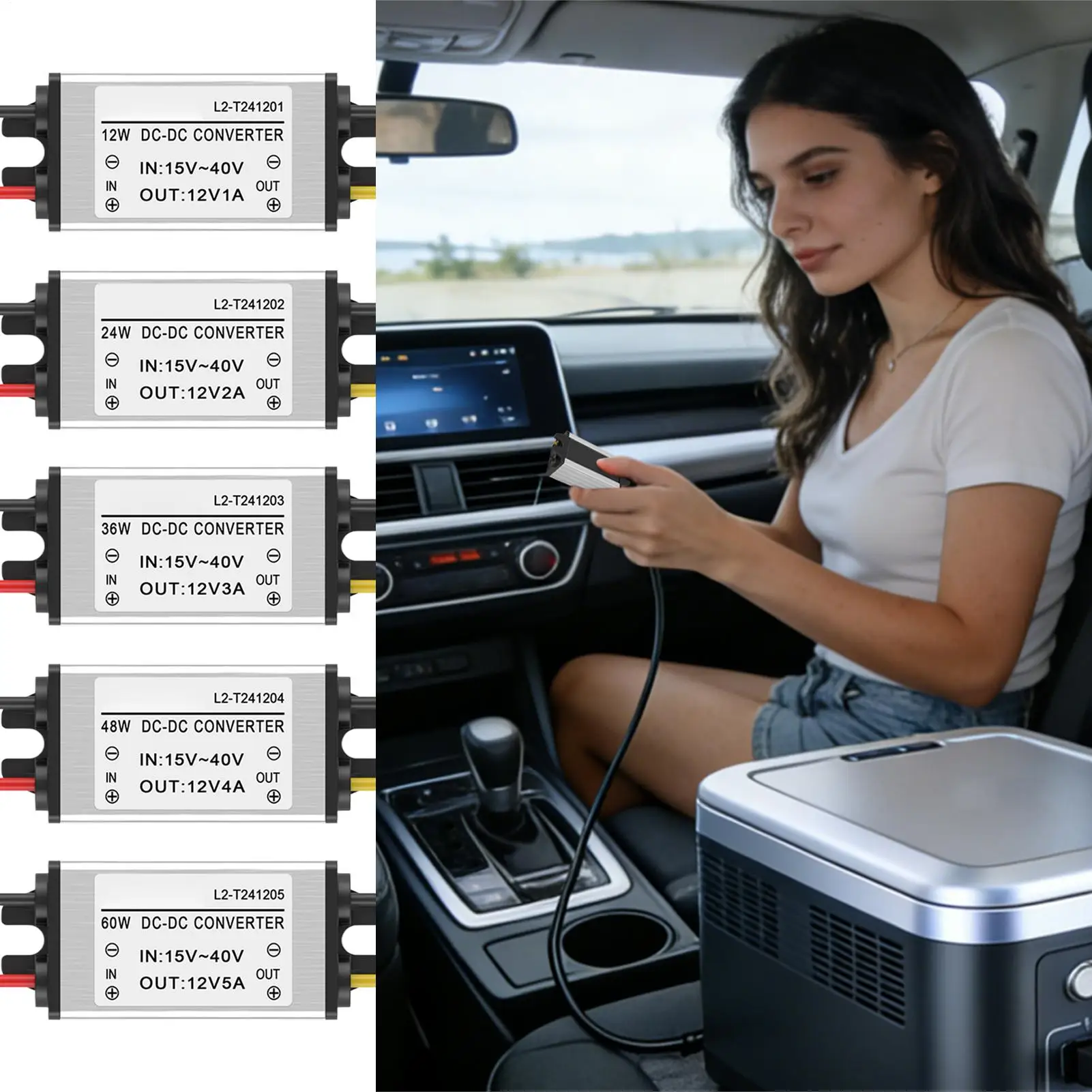 Adattatore di Alimentazione DC Regolabile, Convertitore di Tensione 12V per Auto, Camion, Camper, Elettronica Automobilistica, Strumento Diagnostico