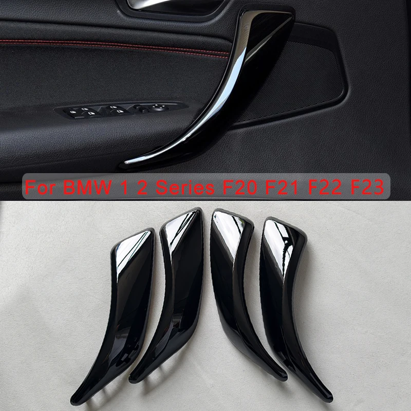 Maniglia di Ricambio per Porta con Rivestimento per BMW Serie 1 2 F20 F21 F22 F23 2012-2016, Copertura Pannello Porta Interno Auto in Fibra Nera Lucida