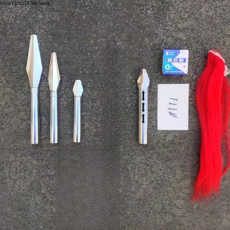 Lancia di Sicurezza per Tai Chi e Shaolin con Punta Rossa a Nappine, in Acciaio Elettroplaccato per Wushu, Arti Marziali e Kung Fu