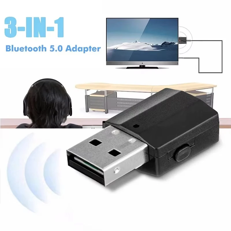 Adattatore Bluetooth 5.0 3 in 1 Ricevitore Bluetooth USB Adattatore trasmettitore audio da 3,5 mm per TV/PC Laptop Adattatore altoparlante per cuffie