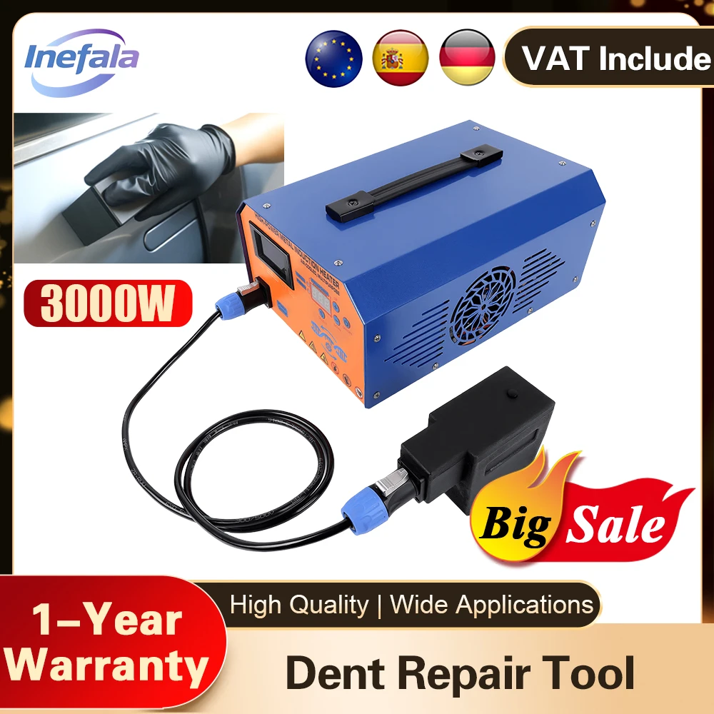 Inefala 3000W Strumento per Riparazione Ammaccature Auto, Riscaldatore a Induzione Senza Fiamma, Rimozione Ammaccature PDR, Kit Riparazione Danni da Grandine per Auto, per Lavorazione Vetro e Metallo