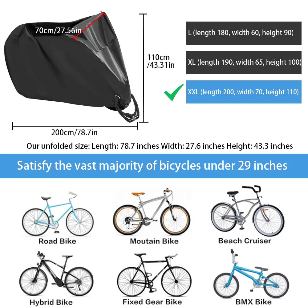 Copertura per Bicicletta 210D Resistente all'Usura, Impermeabile, Antipolvere, Anti-UV, per Tutte le Stagioni, per Interni ed Esterni, Copertura Protettiva per Bici e Scooter