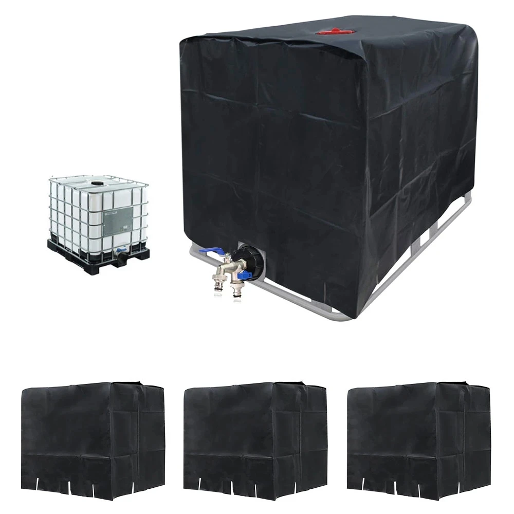 Copertura per Serbatoio d'Acqua da Esterno 1000L, in Tessuto Oxford Nero, Protezione Solare e Antivento per IBC
