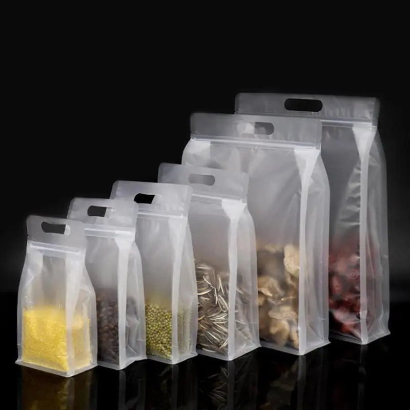 50 sacchetti per imballaggio alimentare trasparenti con manico, sigillati e riutilizzabili, per conservare caramelle e frutta secca, con chiusura a zip
