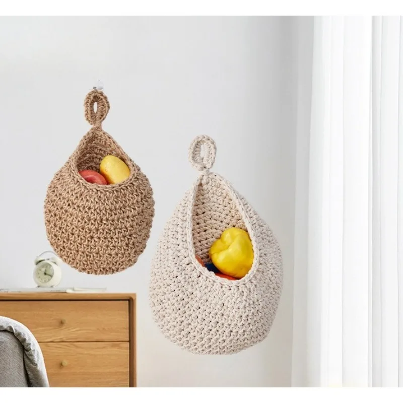 Rete portafrutta e portaoggetti in corda di cotone e canapa, lavorata a mano all'uncinetto, per cucina