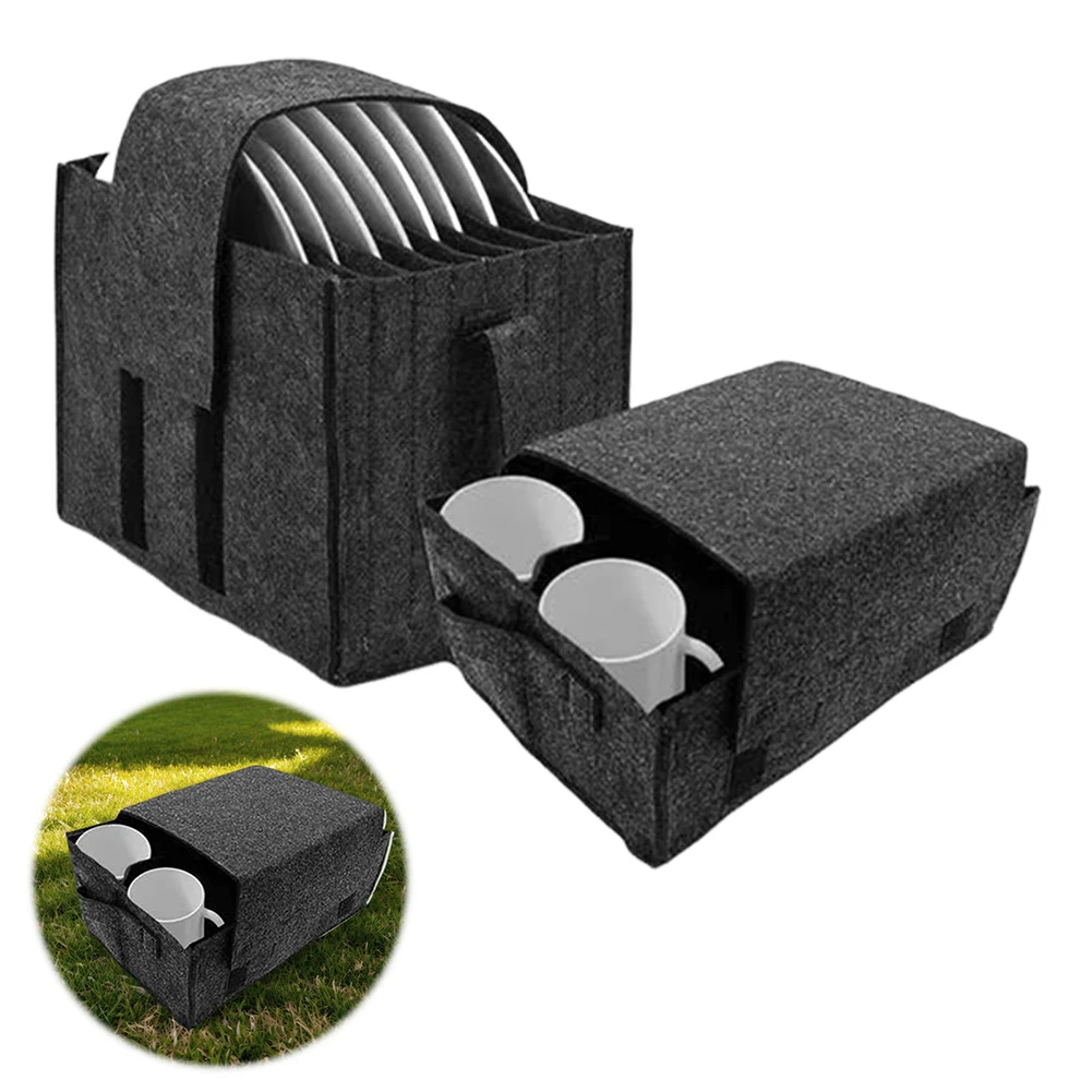 2 Pezzi Scatola Porta Piatti e Tazze con Divisori, Borsa in Feltro per Stoviglie da Campeggio, Protezione per Cucina e Armadietto di Camper
