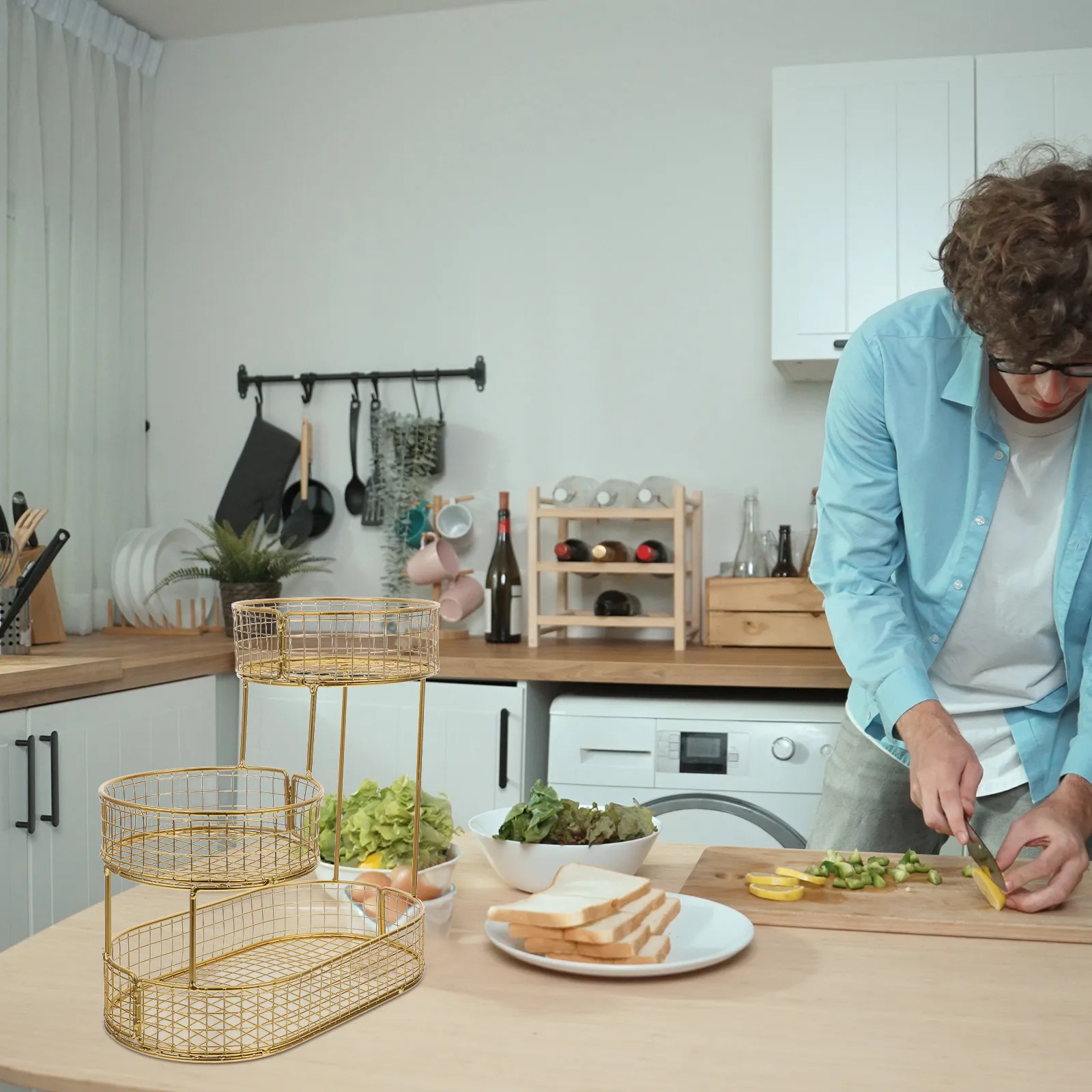 Cestino Portafrutta a 3 Livelli in Metallo, Finitura Oro, Grande Organizzatore in Filo Metallico, Grande Capacità per Cucina e Bancone