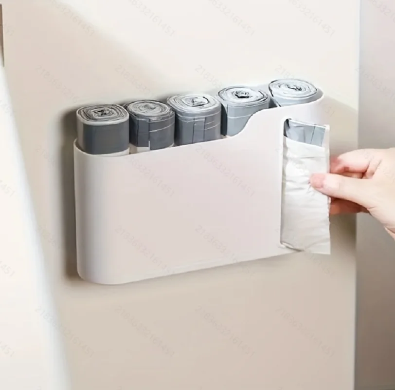 Faridabio 1 pezzo Pratico e robusto contenitore per sacchetti della spazzatura da montare a parete per uso quotidiano, facile accesso ai sacchetti della spazzatura nel bagno