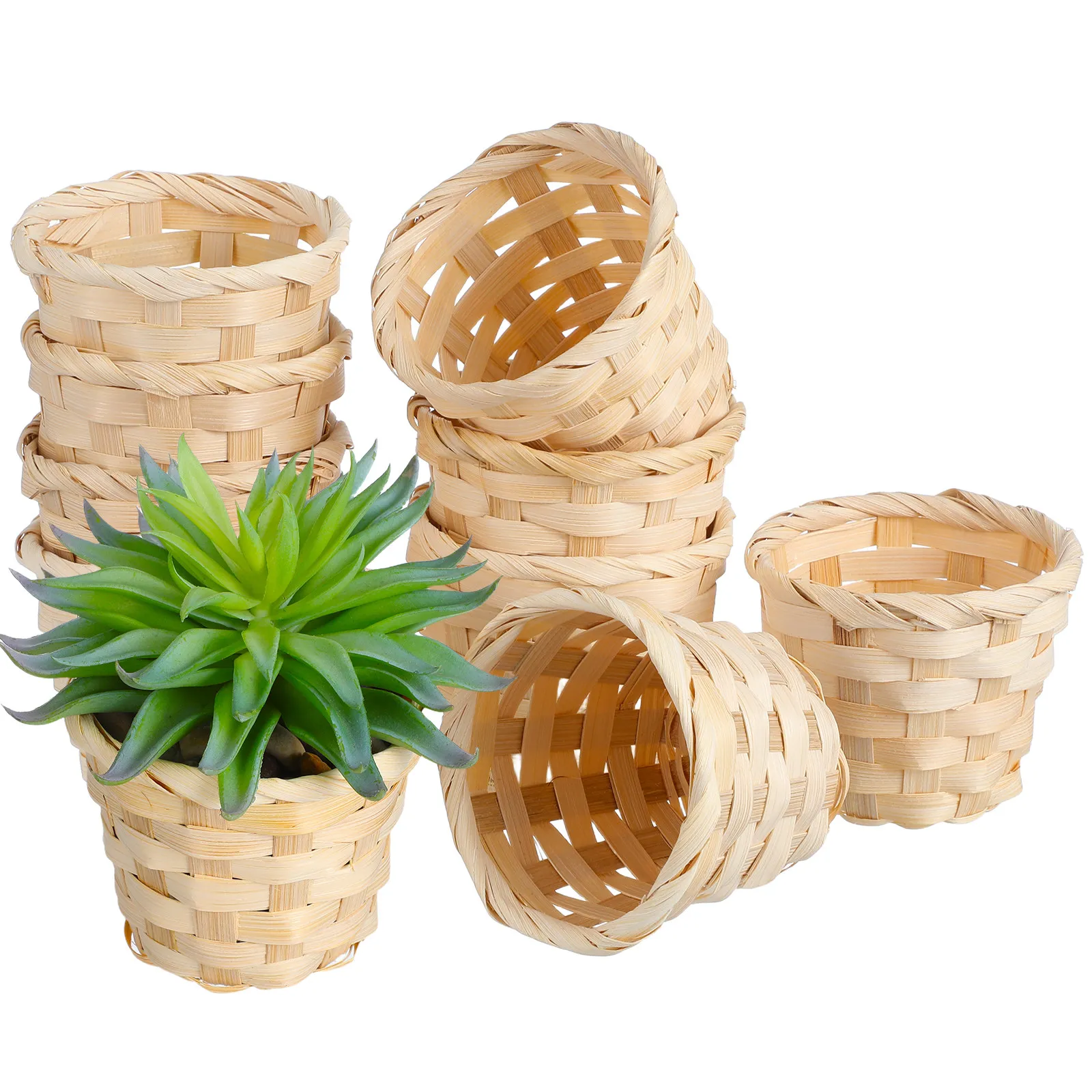 Set di 10 Cestini in Bambù Stile Rustico, Mini Cesti Intrecciati per Frutta, Piante Succulente e Fiori