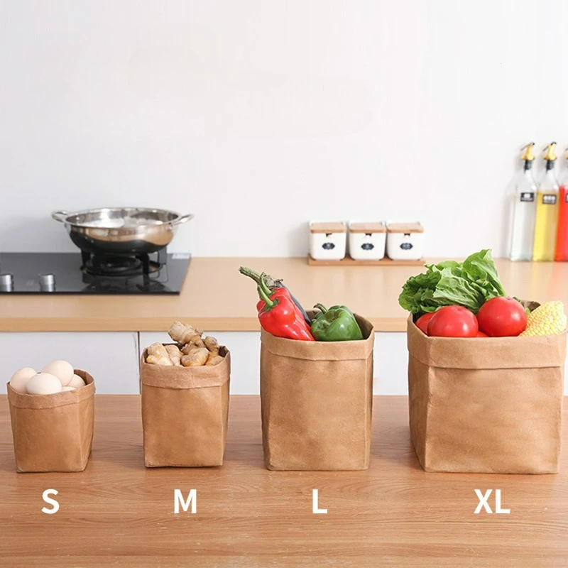 Sacchetti di Carta Kraft Lavabili, Borse Riutilizzabili per Alimenti, Frutta, Verdura, Piante, Fiori e Pane