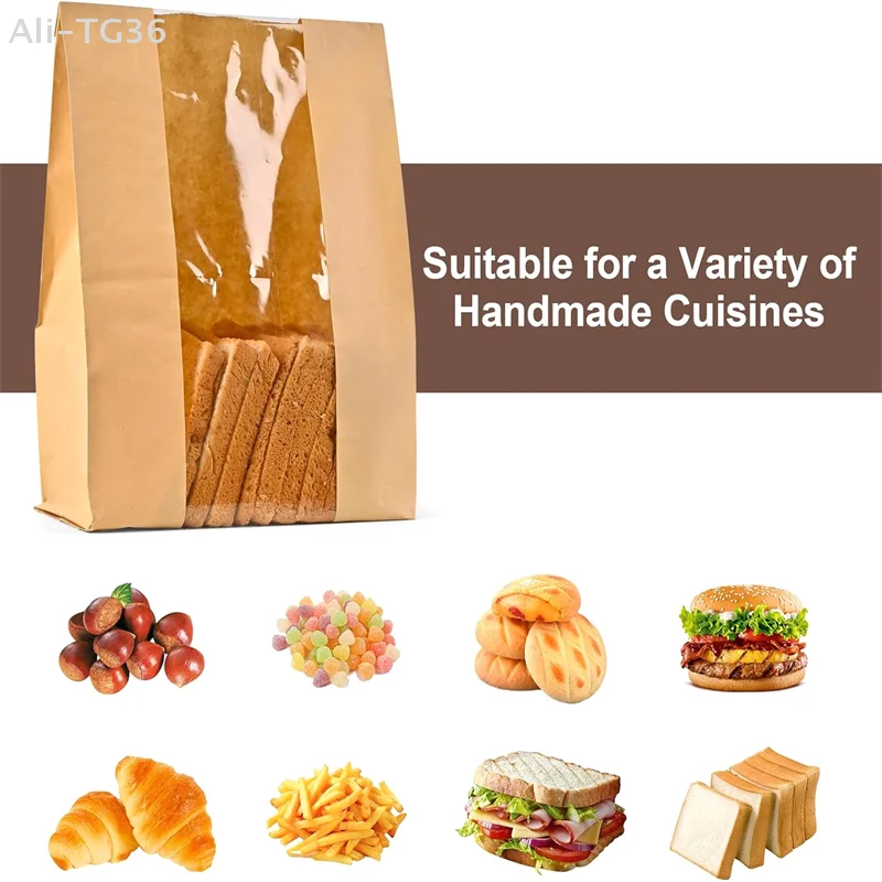 50 sacchetti di carta Kraft con finestra per pane, toast fatti a mano, biscotti, caramelle, con etichette adesive per la sigillatura