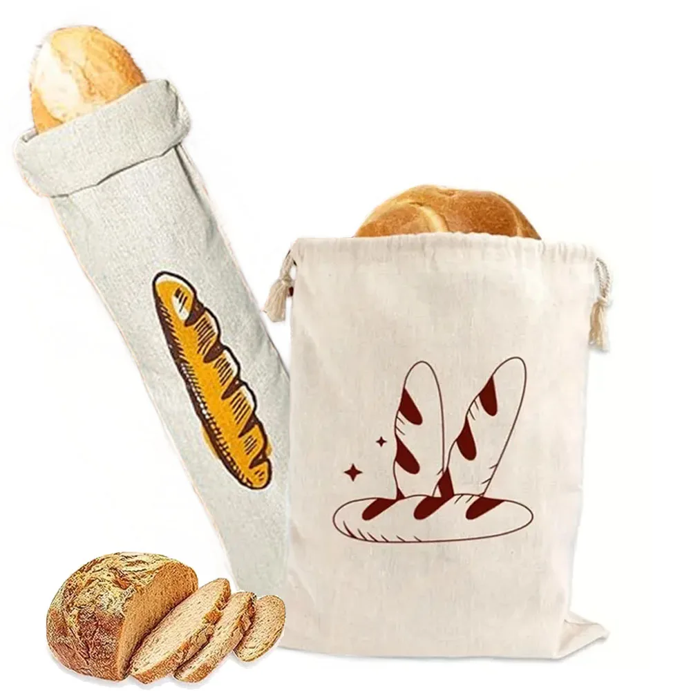 Sacchetto per Pane in Lino Riutilizzabile con Cordoncino, Contenitore per Pane Fatto in Casa, Baguette Artigianale, Accessorio Ecologico per Panificazione