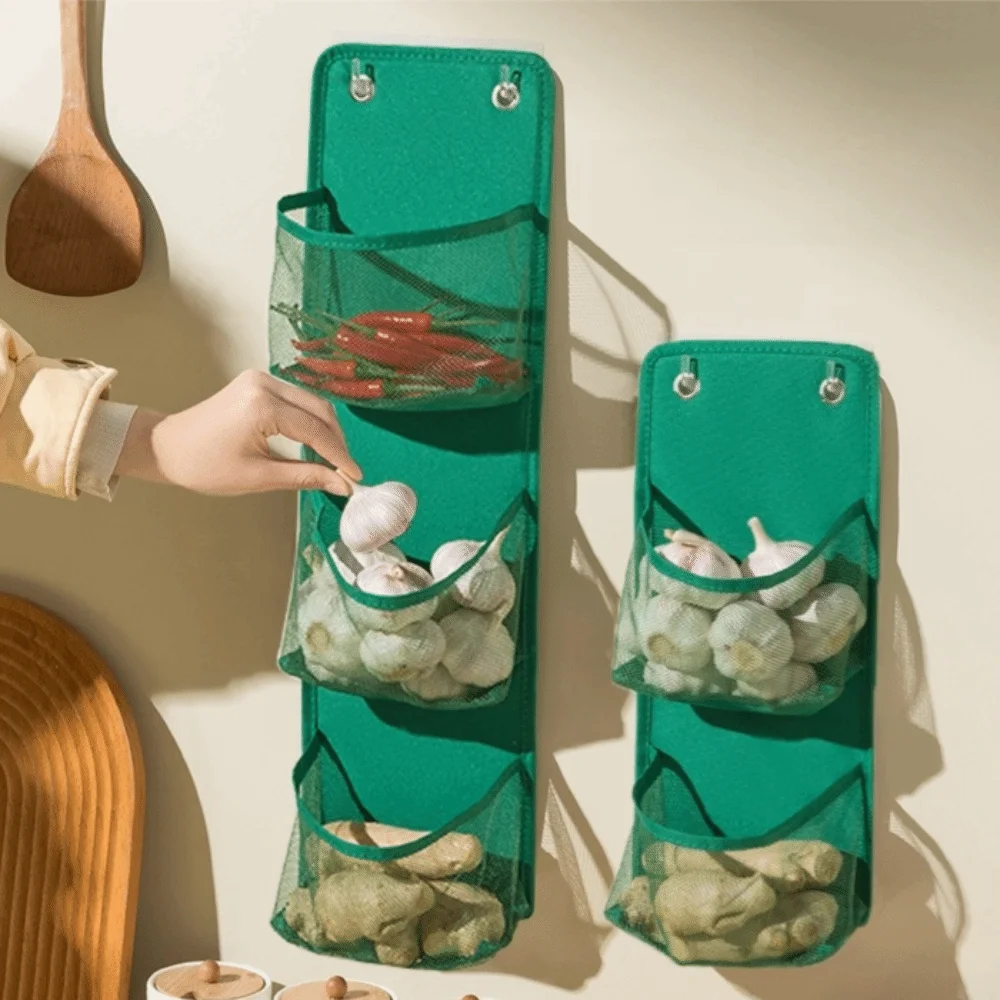 Borsa da appendere multifunzionale per frutta e verdura da cucina borsa da appendere a parete per zenzero e aglio borsa a rete artefatto di stoccaggio riutilizzabile