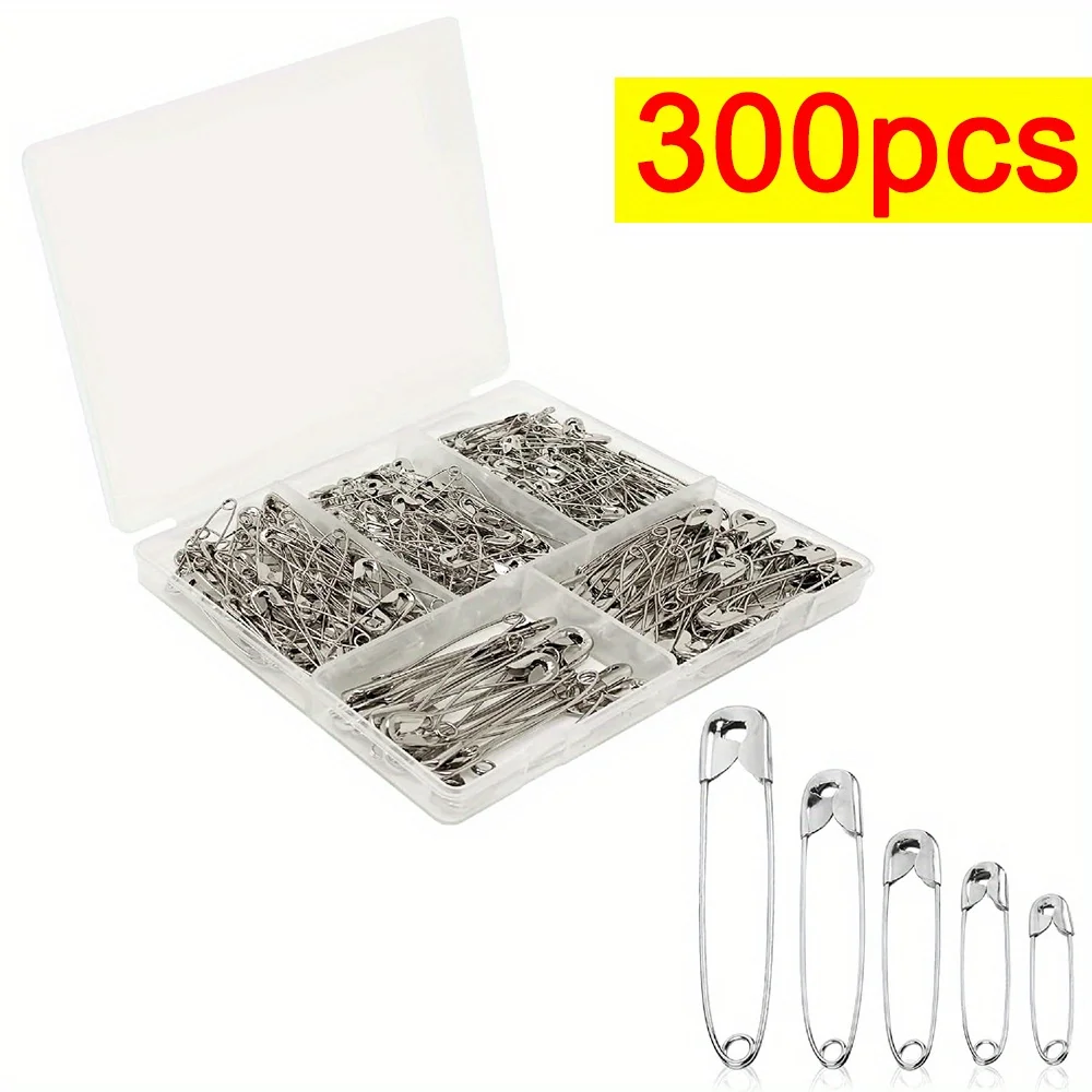 Set di 300 spille di sicurezza assortite - 5 misure assortite di dimensioni piccole e grandi, resistenti, per vestiti e cucito