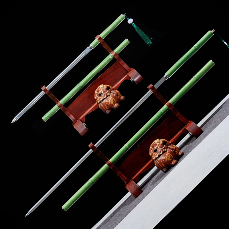 Spada di bambù simulata, spada cinese in vero metallo, due misure, colore verde, Shirasaya, accessori per cosplay e film, non affilata