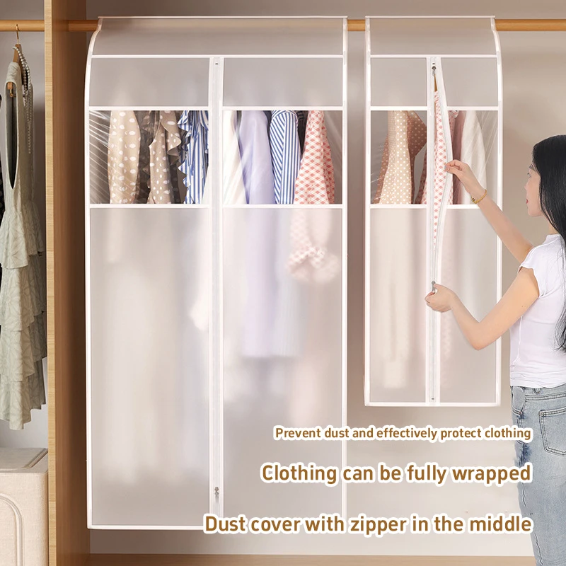 Copertura antipolvere per abiti da appendere verticalmente, borsa portaoggetti trasparente con finestra visibile, antipolvere e antiumidità, per la conservazione domestica.