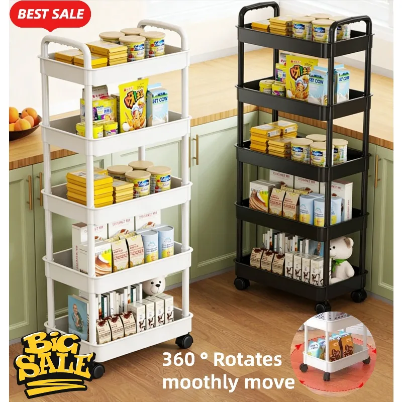Scaffale da Cucina a 5 Ripiani, Carrello Mobile, Scaffalatura Multilivello da Terra, per Snack, Frutta e Verdura