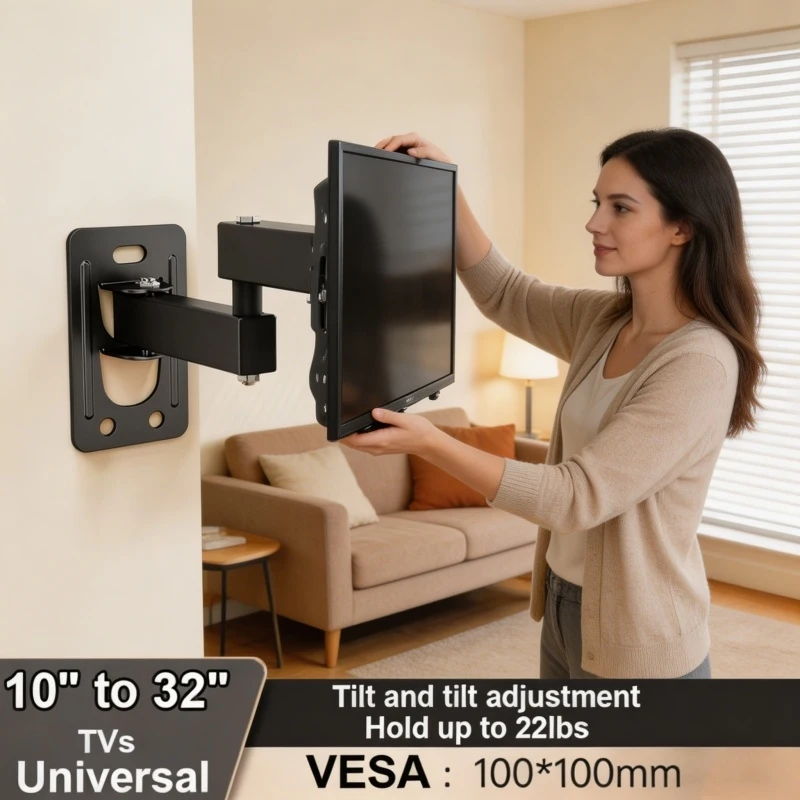 Supporto da Parete Regolabile per TV da 10"-32" LED LCD, Carico Massimo 10kg, VESA 100x100, per Casa e Ufficio