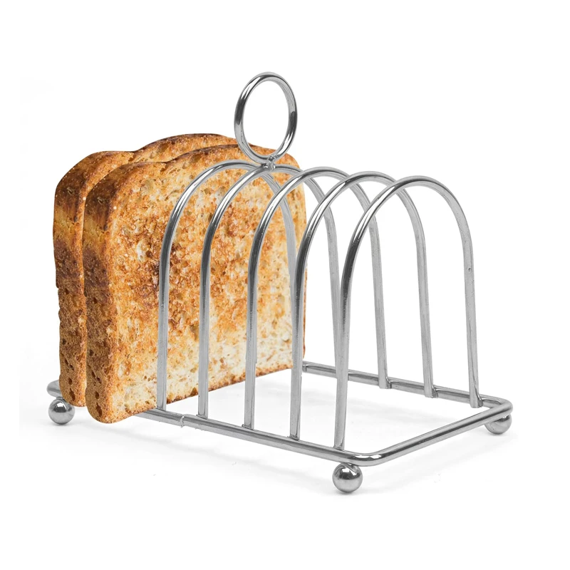 Griglia per toast in acciaio inossidabile 6 griglie Slot per fette di pane Supporto per toast con manico Organizzatore per fette di pane Supporto per toast