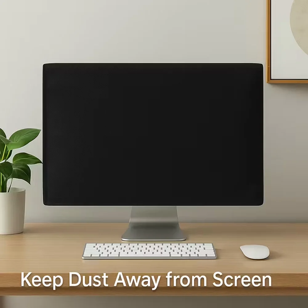 Protezione antipolvere per monitor per computer in poliestere nero da 21 pollici 27 pollici con rivestimento interno morbido per schermo LCD LA001