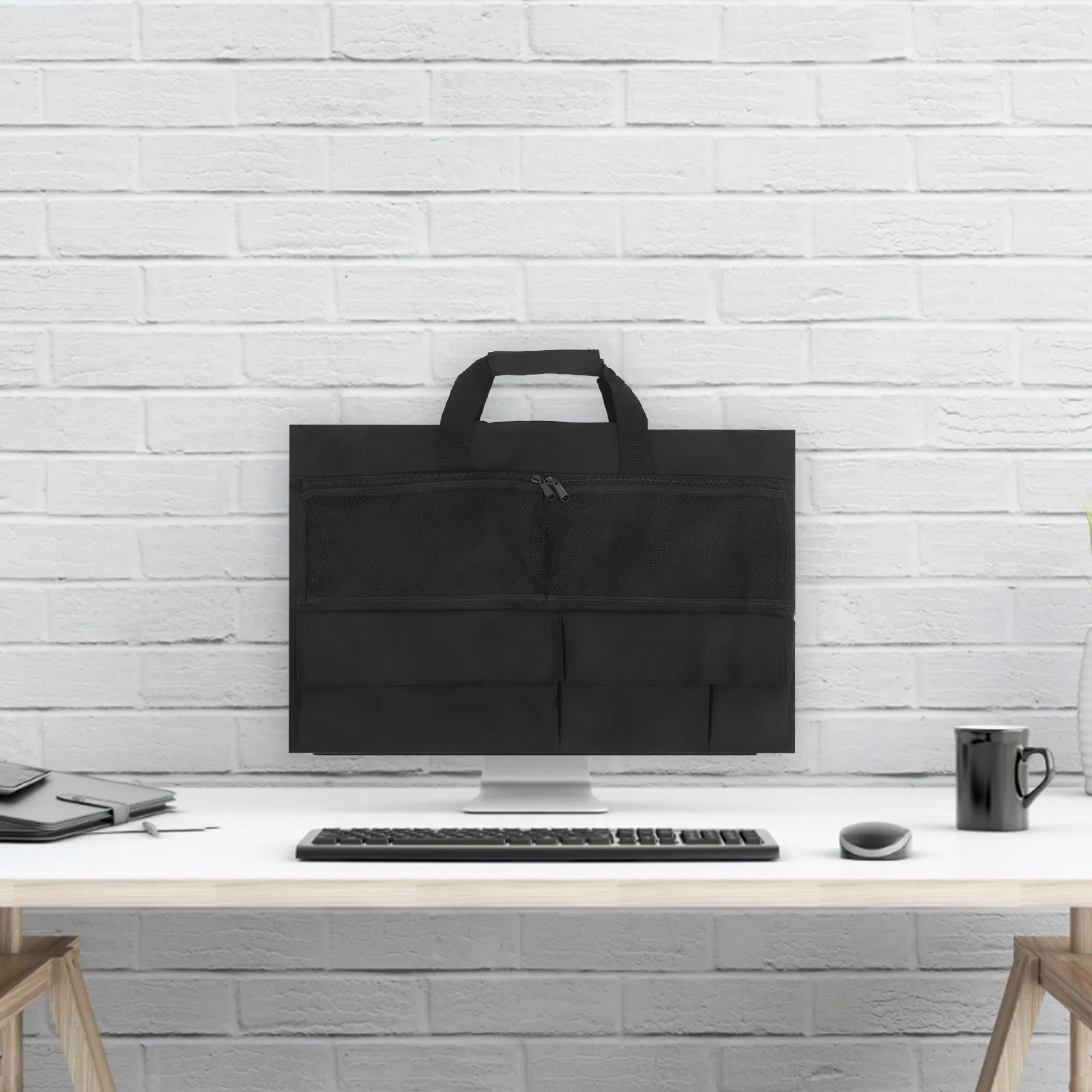 Custodia impermeabile per monitor da tavolo per schermo da 27 pollici con morbida imbottitura interna Organizzatori tascabili da