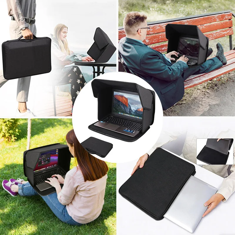 Parasole Portatile per Notebook da Esterno, Schermo Privacy Pieghevole, Borsa per Laptop da 12-16 Pollici con Protezione Solare