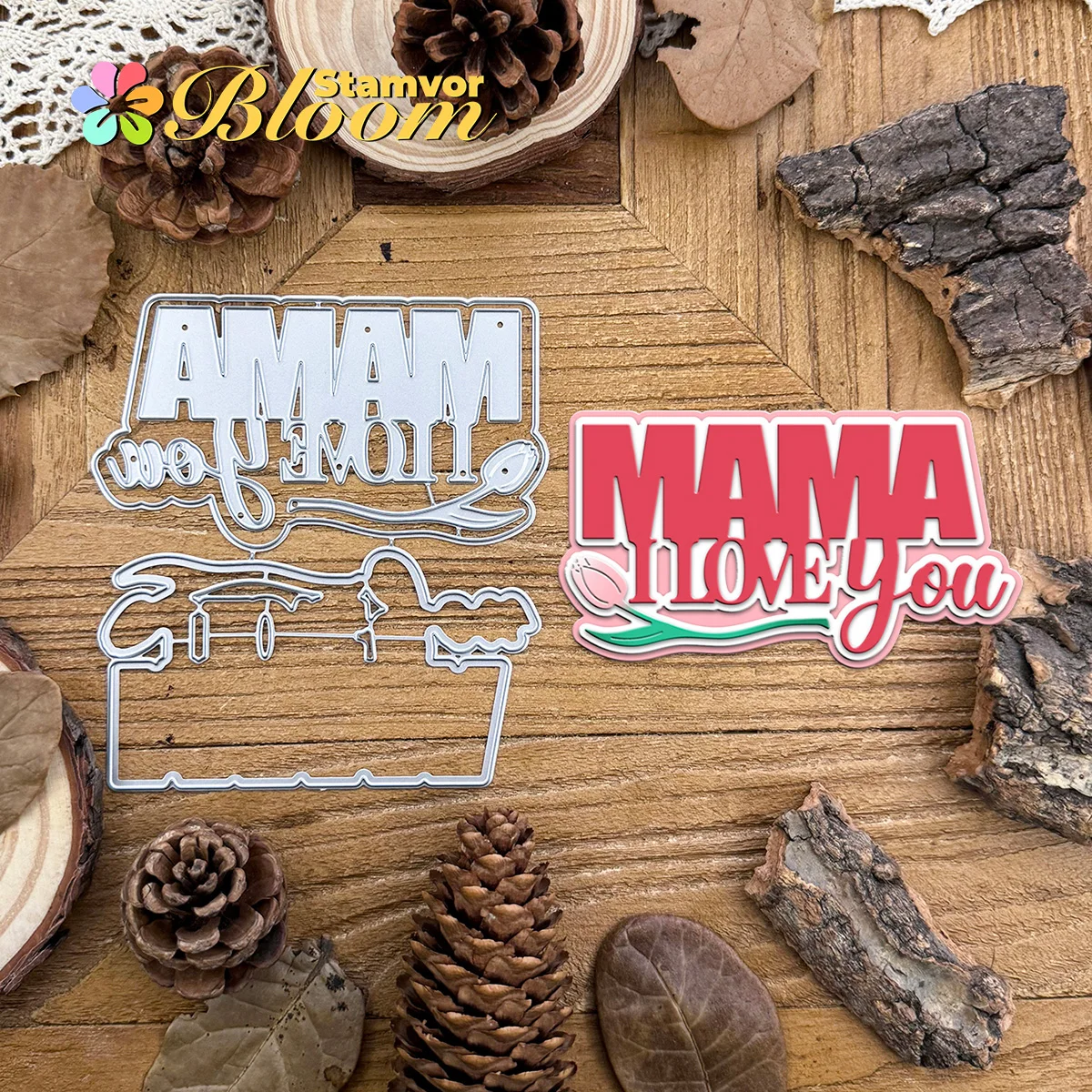 Strati adorabili MAMMA TI AMO Tulipano Parole Titolo Metallo Fustelle Scrapbooking Goffratura decorativa