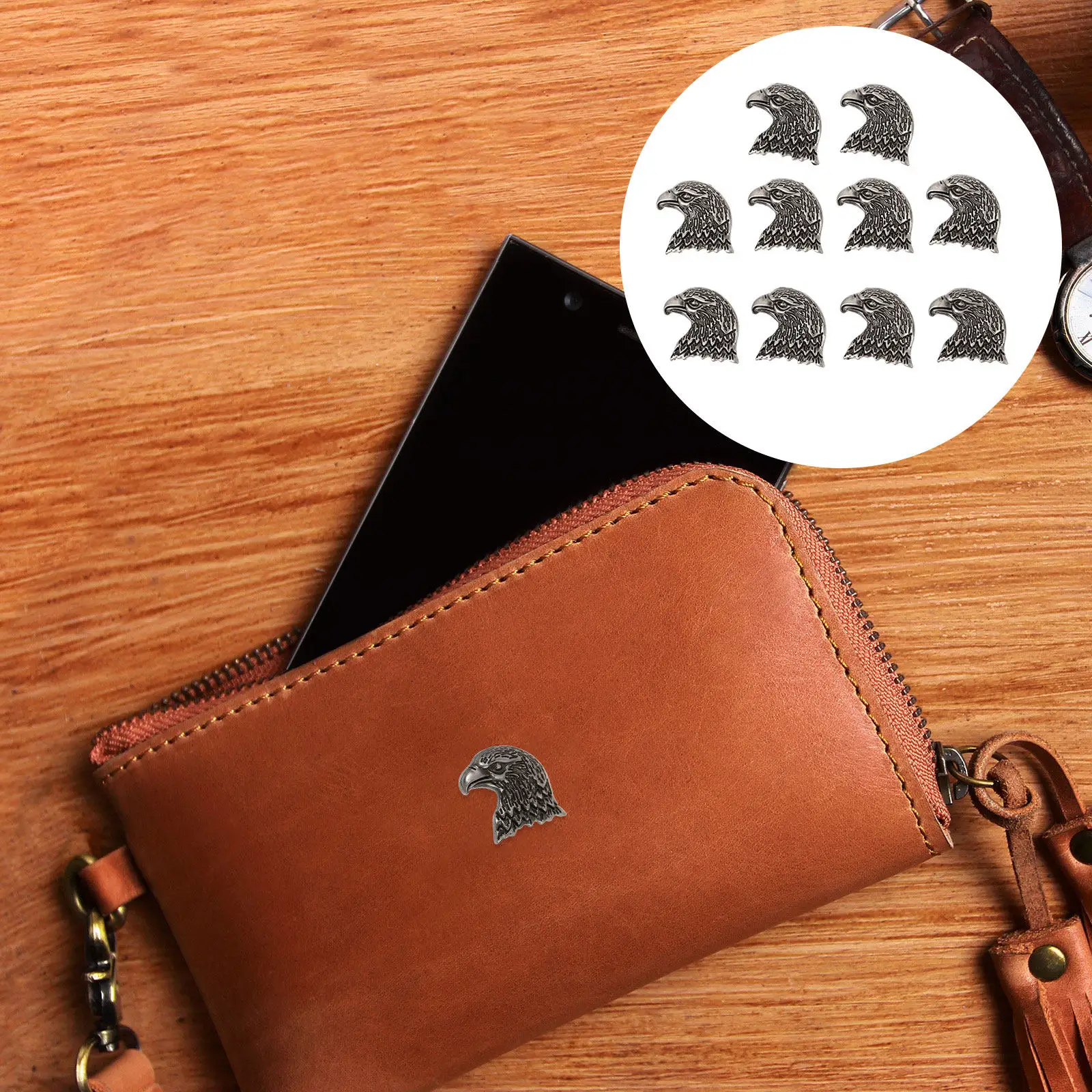 10 Pezzi Rivetti Decorativi in Lega a Forma di Testa d'Aquila, Accessori Retrò per Borse, Abbigliamento, Scarpe, Cinture Fai-da-Te