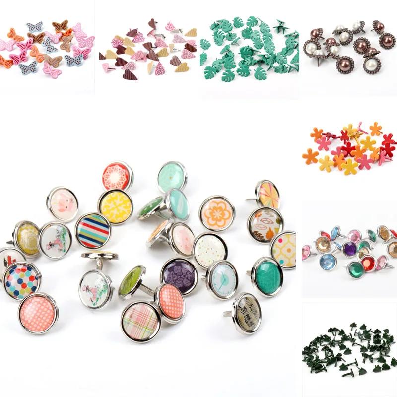 Mescolare farfalla fiore forma di foglia strass borchie e punte per vestiti tondi quadrati Brads Scrapbooking abbellimento chiusura