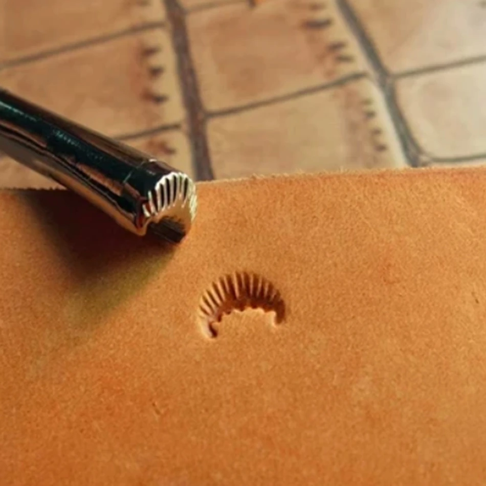 Utensili per la lavorazione del cuoio, strumenti di precisione in acciaio per incisione ed embossing, motivi a foglia di pino. Ordini personalizzati accettati.