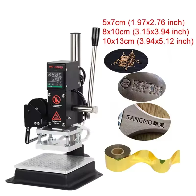 WT-90GS Macchina per stampa a caldo manuale per pelle PU, plastica, legno - Stampa logo desktop e pressa per marchi per portafogli