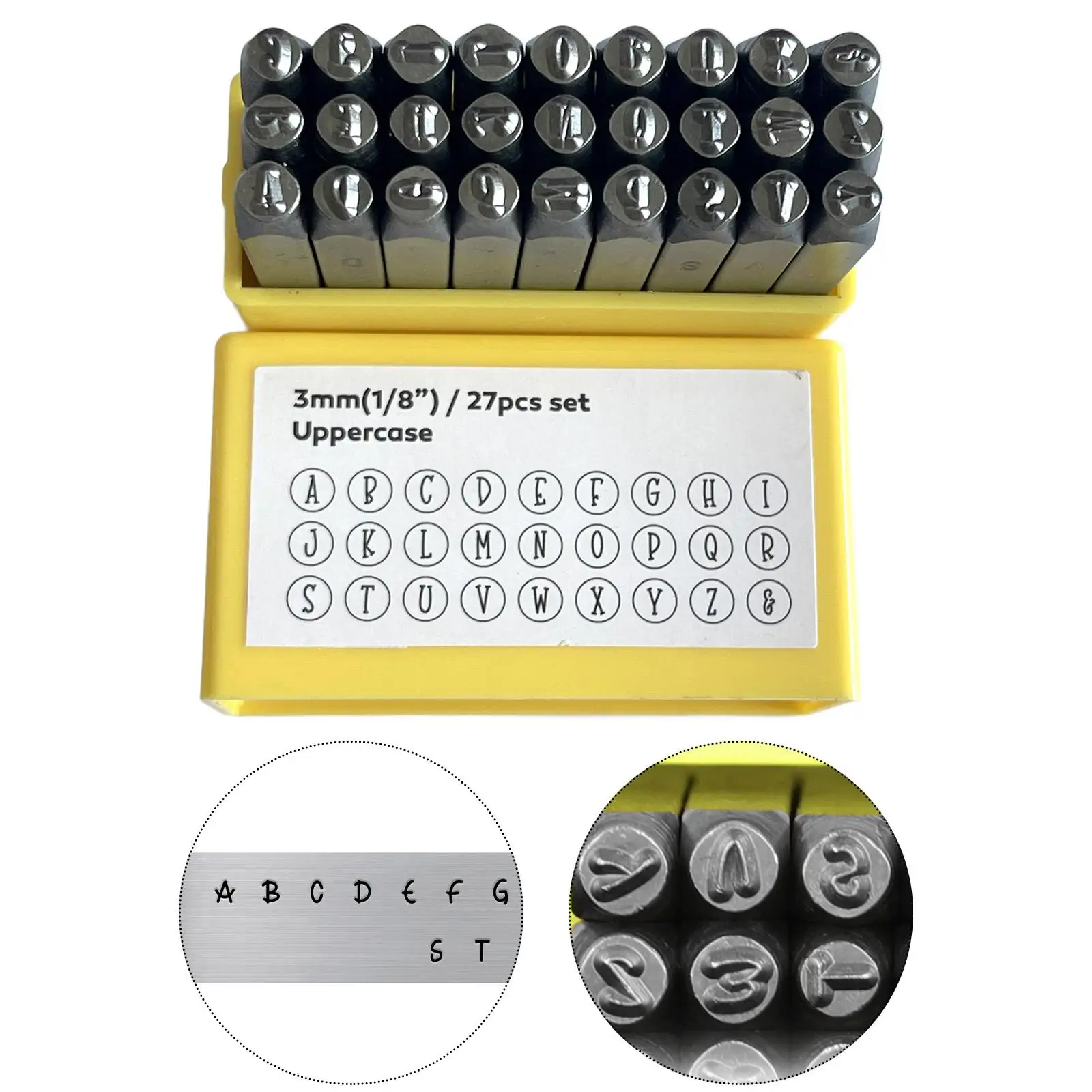 AB08 - Set di punzoni per sigilli in metallo per la creazione di gioielli, con lettere maiuscole in stile artistico e punzoni con lettere minuscole in stile artistico