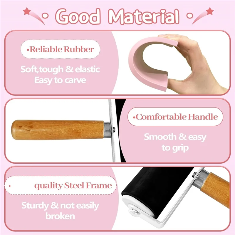 AB66-Blocchi per intaglio di timbri con utensili da taglio, blocco di gomma rosa per timbri, incisione fai-da-te