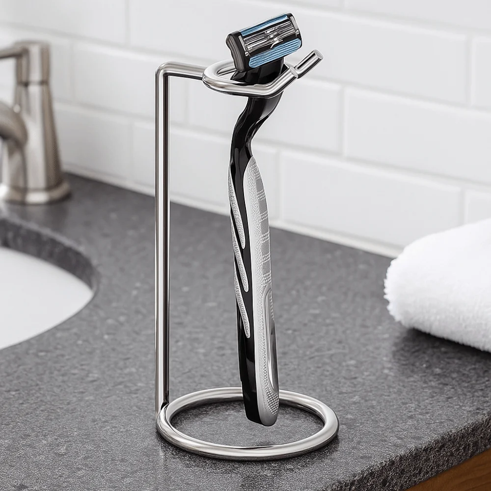 Portaoggetti portatile per rasoio in acciaio inossidabile Argento Facile da trasportare Espositore per rasoio Supporto per rasoio di sicurezza Rasatura con manico lungo