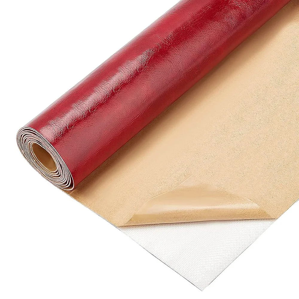 Tessuto autoadesivo in pelle PU rettangolare rosso scuro 135x30x0,1 cm