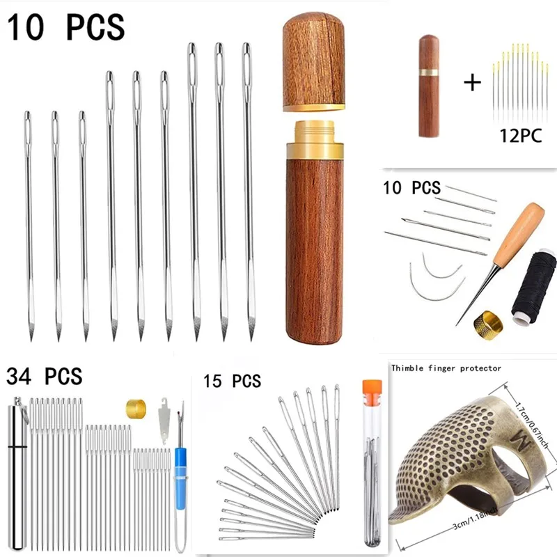 10pc Artigianale In Pelle FAI DA TE A Mano Ago Da Cucire BigEye Manuale Strumento di Ricamo Punto Tessuto Croce Blunt Pint A Maglia Aghi Ditale Kit