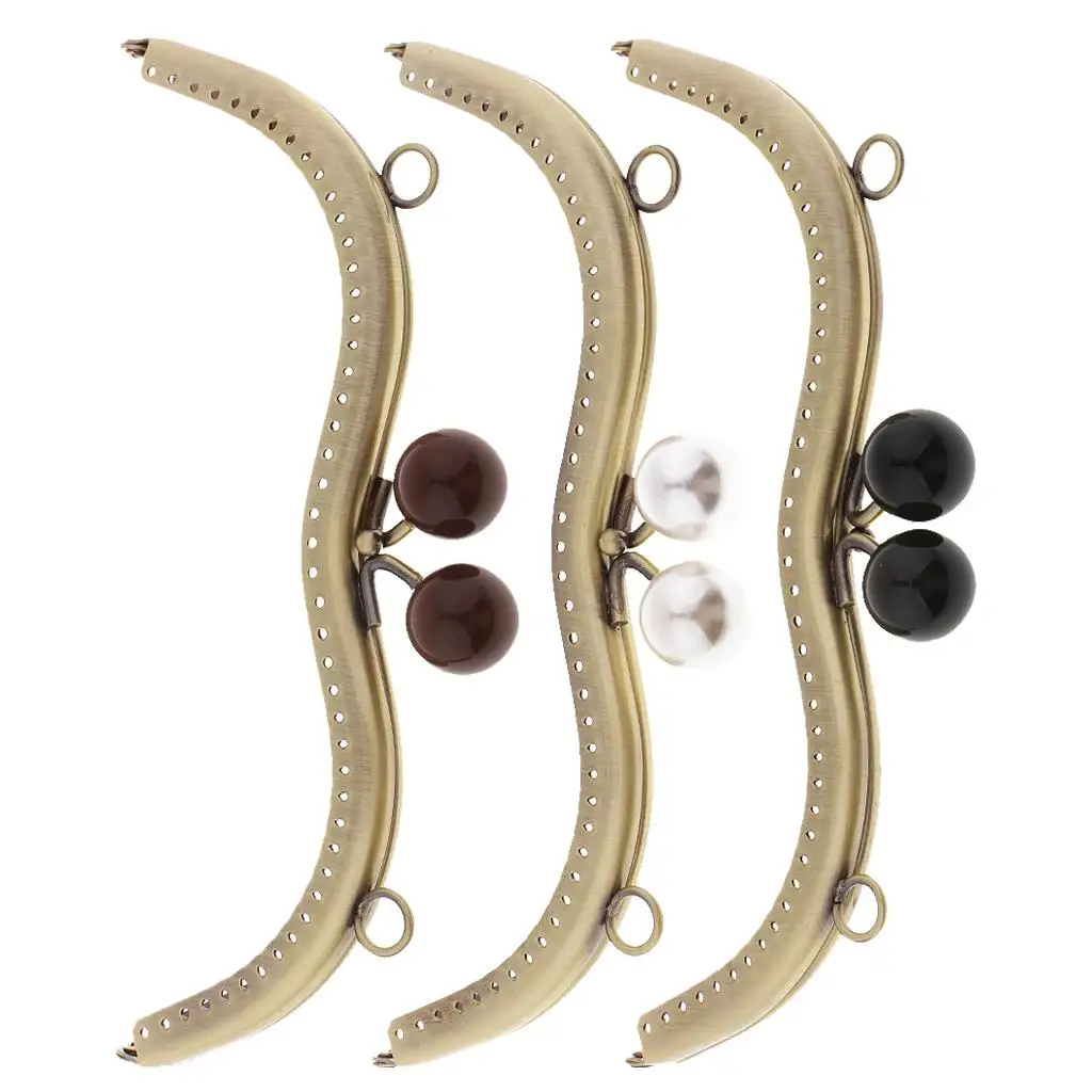 1PC struttura in metallo vintage per borsa da cucire tono bronzo con chiusura a sfera di perla chiusura a bacio in metallo accessori per borse con chiusura 19 cm