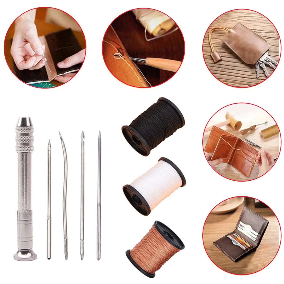 33 pezzi kit di strumenti per cucire in pelle con filo cerato e aghi punteruolo set di strumenti professionali per accessori artigianali fatti a mano in pelle fai da te