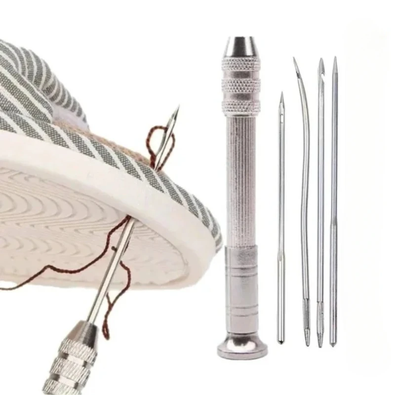 Set di aghi per cucire in pelle, compresi un graffetta in pelle argentata e un set di aghi in quattro pezzi adatto per tende in pelle