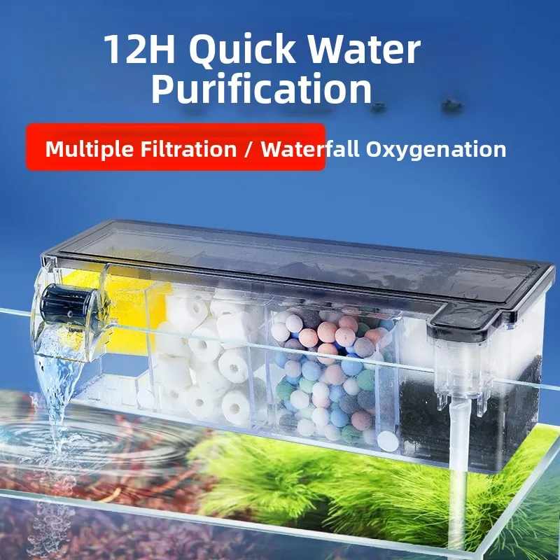 Filtro per Acquario Tutto-in-Uno da Parete, Purificazione dell'Acqua, Ossigenazione, Coltivazione di Batteri, Silenzioso, Scatola Drop Str