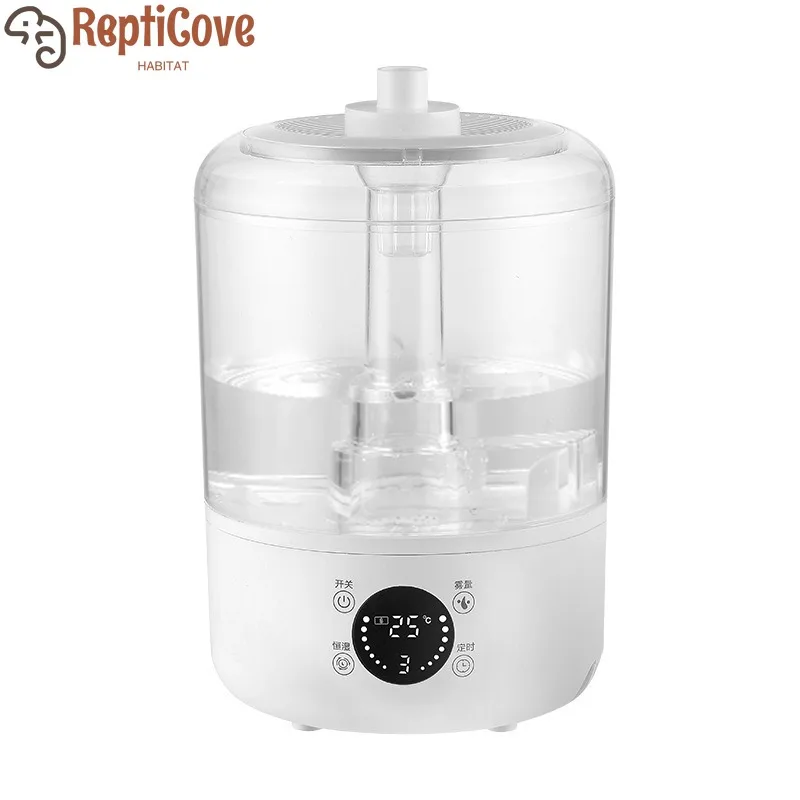Atomizzatore automatico per rettili Foresta pluviale simulata Aria umidificata Forma rotonda Riempimento superiore per uso domestico Umidificatori per animali domestici per rettili H2o a LED