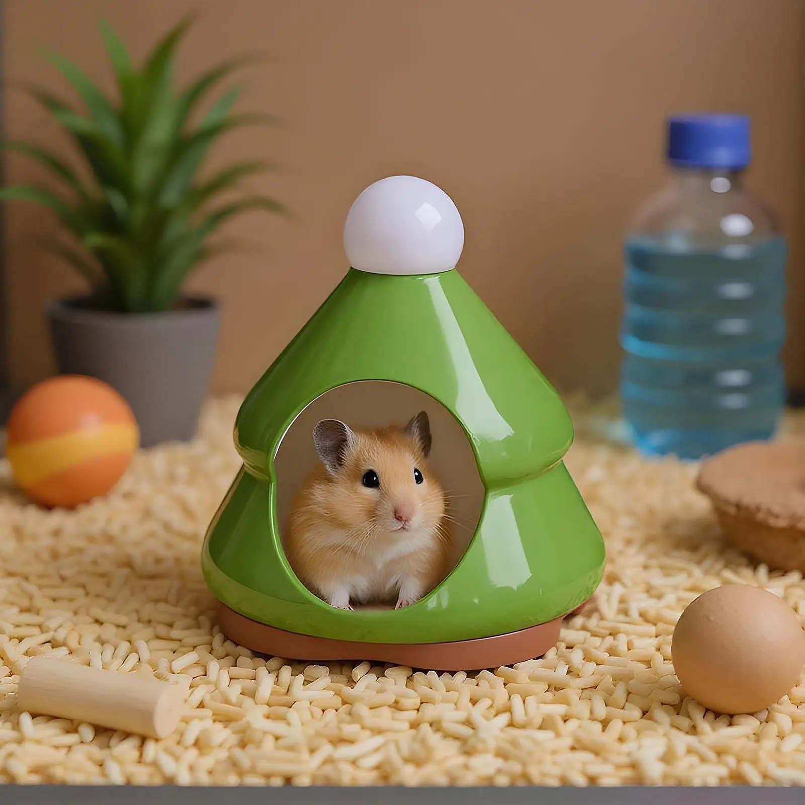 Casetta per Criceti a Forma di Albero di Pino, Gioco da Bagno, Rifugio in Ceramica per Animali Domestici, per Dormire all'Interno e all'Esterno, per Cincillà ed Erpici